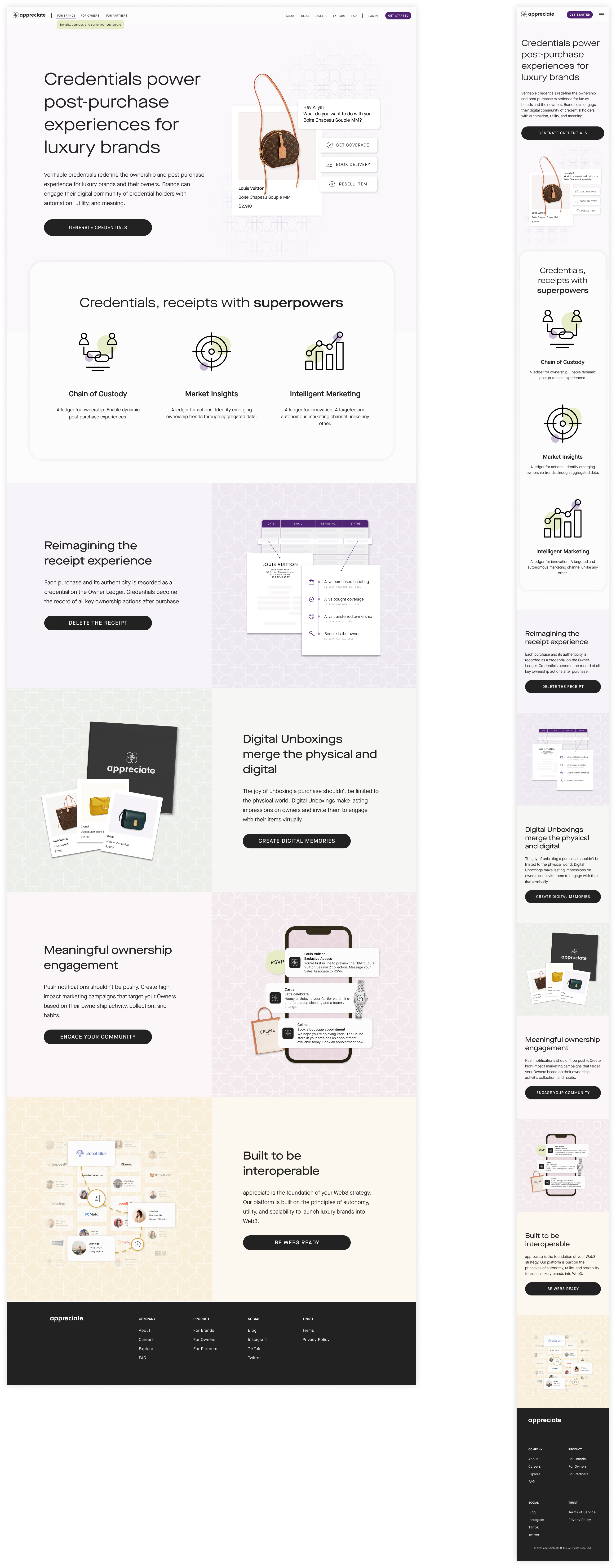 ︎︎Overall, the website redesign was an important step in the appreciate rebranding process, allowing us to fully showcase our new brand identity and provide a better user experience for our audience through all the pages.